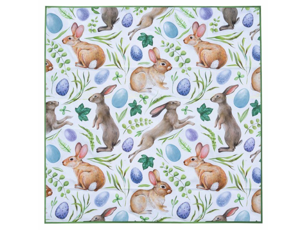 A nyuszik🐰, húsvéti tojások🥚, virágok🌼 és más tavaszi elemek motívumaival díszített játékos dizájnnak köszönhetően friss, modern és egyben otthonos is. Tökéletesen illik más dekorációkhoz, és harmonikus egészet alkot az asztalodon.